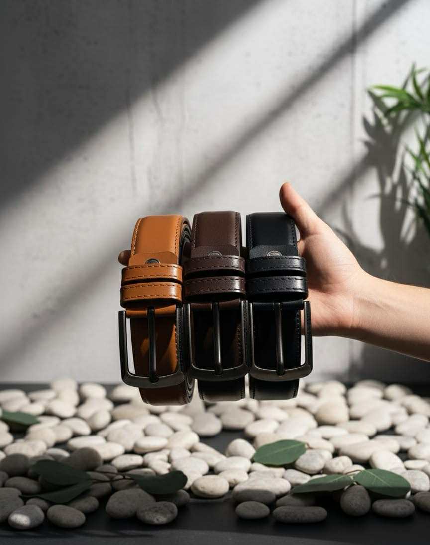 3 أحزمة رجالي كلاسيك جلد طبيعي